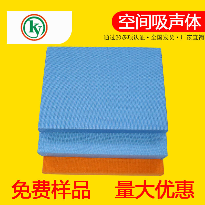 凱音牌空間吸聲體簡介:吸聲性能好,吸聲頻帶寬,有效控制和調室內混響。防火、防潮。安裝簡單,外型美觀,組裝靈活方便。外形規格多樣,吸音布面有多種顏色可供選擇。